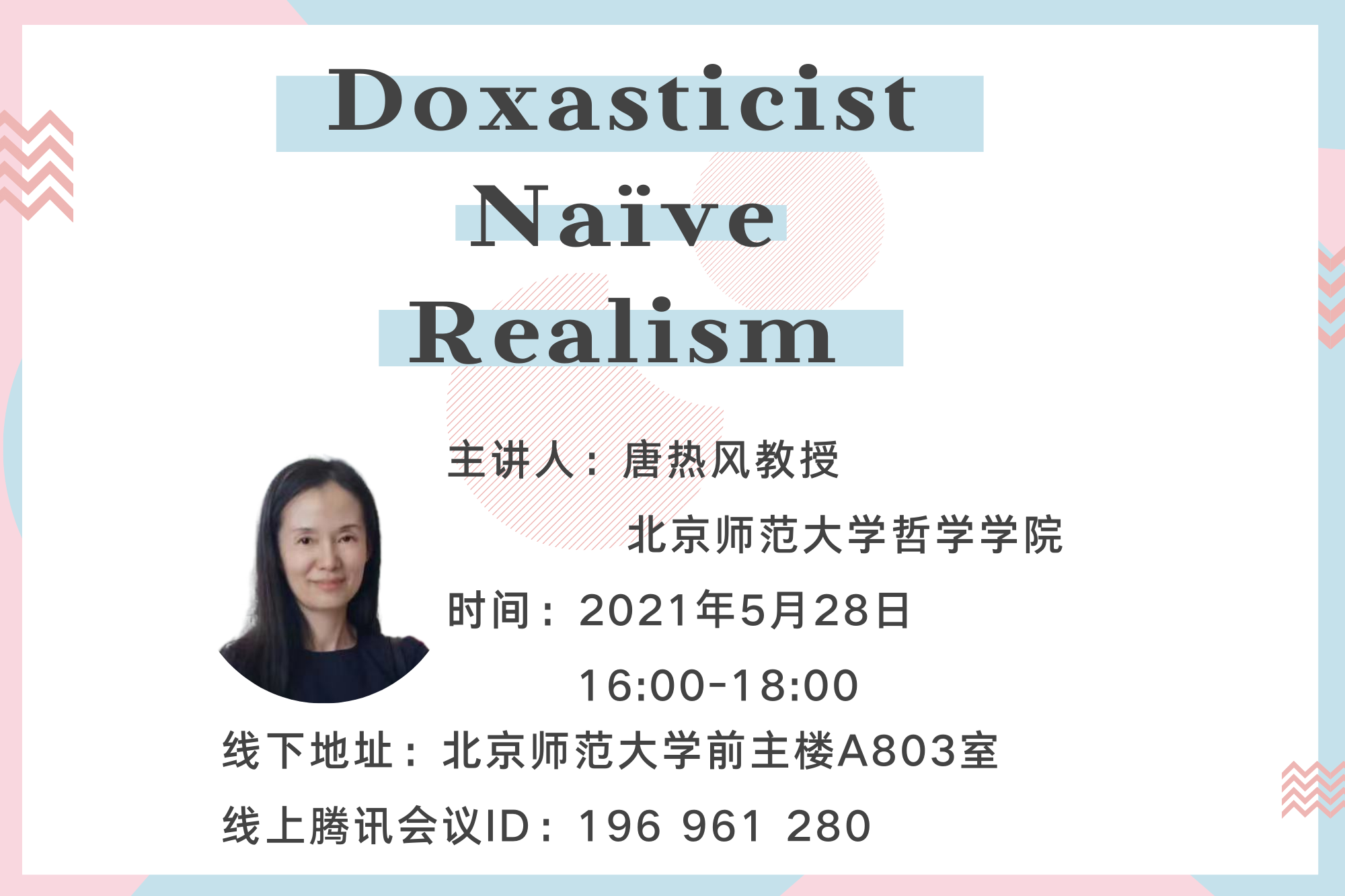 【预告】逻辑与认知科学研究所系列讲座——Doxasticist Naïve Realism