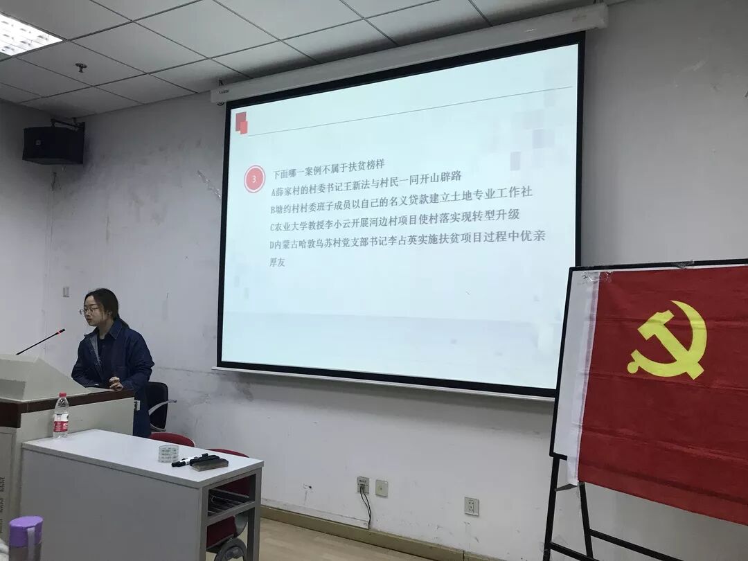 祁玥同志以脱贫攻坚为主题,利用鲜活的扶贫先锋党员敢于承担、甘于奉献的事迹,唤起了支部成员们为脱贫攻坚事业做出贡献的激情。